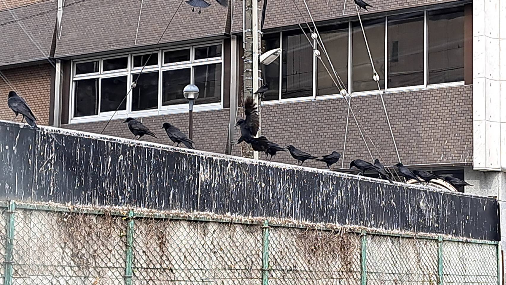 カラスが集まる様になったので、今まで鳩が同じ場所に集まって困っていたが、鳩は道路の反対側に駆逐された。