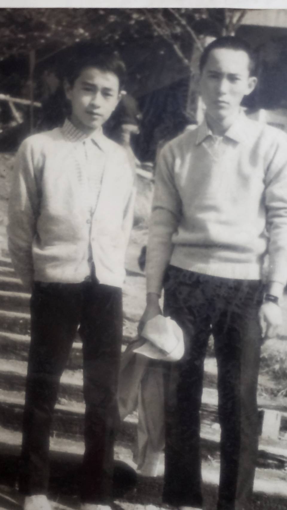 (兄貴もバスケットをやっていて、同じクラブの2年年上だったので、当時は神様と下足番の関係であった。当然、バスケットを離れたら、この関係は解消される筈ですが、今だにこの距離は変わらない。)