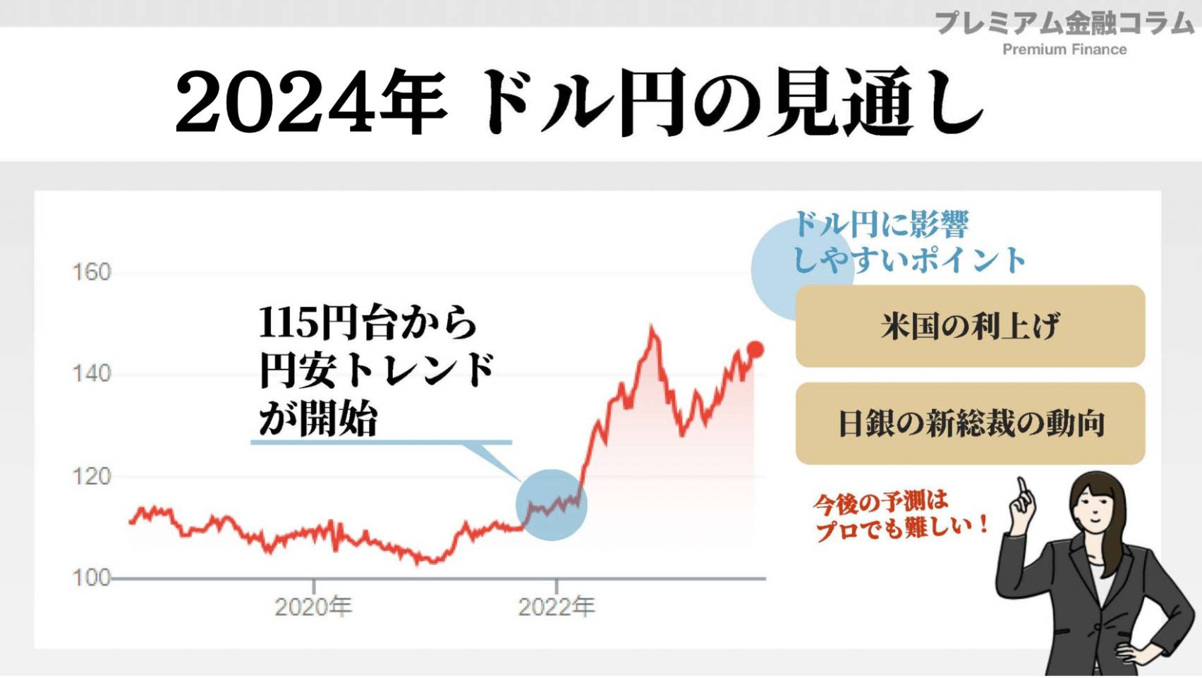 下記の対ドル相場のグラフは右肩上がりに円安になっている。