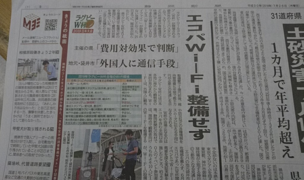 この時、フリーWi-Fiが設置されないと言う新聞記事が先日載っていた。(上記写真)
