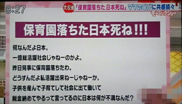 2016年(平成28年)2・15にツイッター(現在のX)で、「保育園落ちた!日本死ね!」と言う言葉が、その年の流行語大賞の10選に入った。
