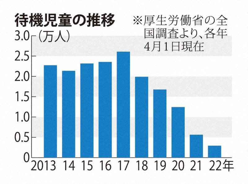 先日の新聞報道で、8年連続で待機児童が減少していて、2017年当時、26,000人程であった人数は、2023年(6年連続で)2,600に減少して、10分の1まで解消したと、載っていた。